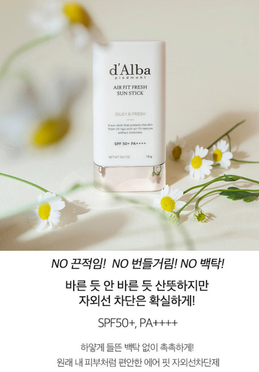 d'Alba Air Fit Fresh Sun Stick SPF50+ PA++++ 19g | Vegan Korean Sunscreen