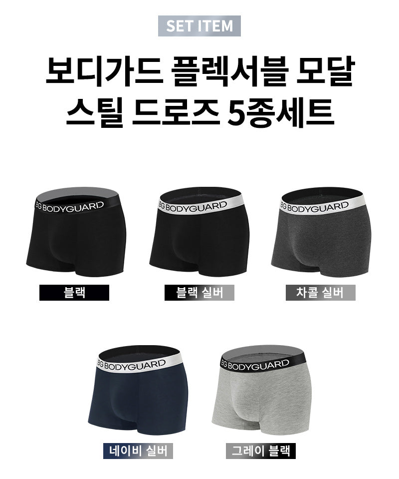 1) 보디가드 모달(Rayon) 스틸밴드 드로즈 5종세트