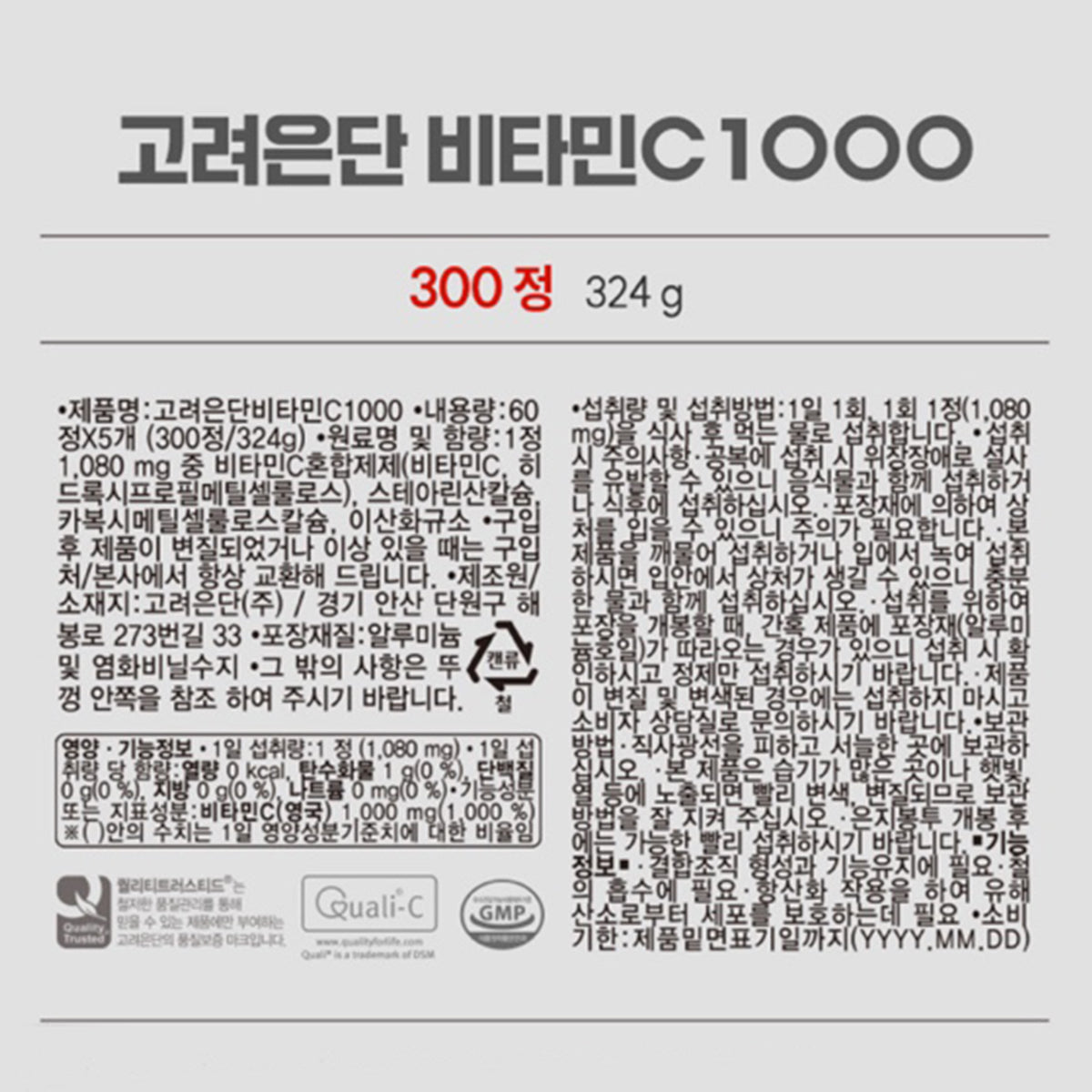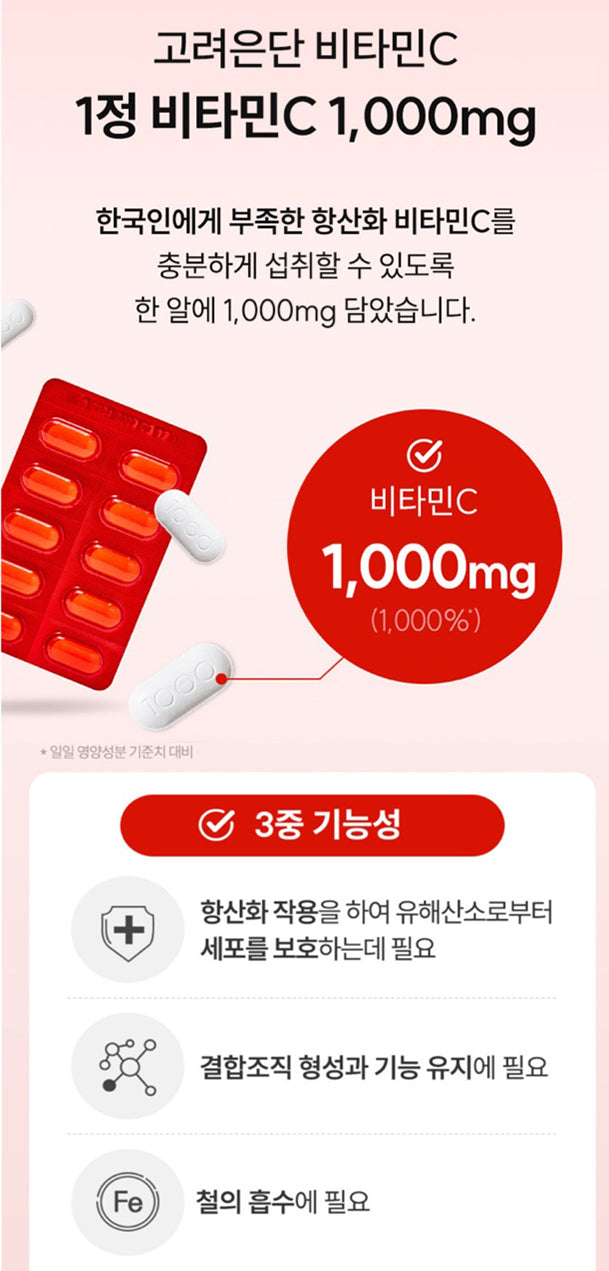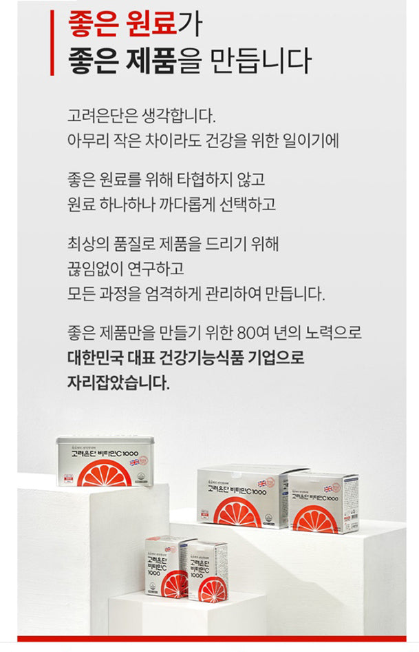 고려은단 비타민 C 1000mg은 한국에서 가장 신뢰받는 면역력 영양제 중 하나입니다.
